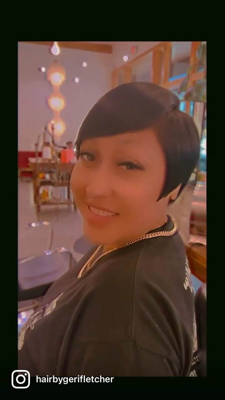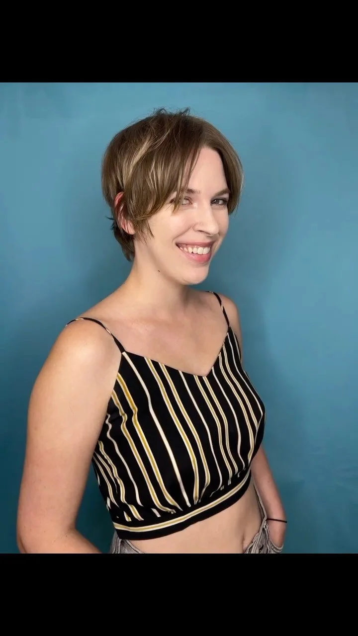 My specialties include: Precision cuts // Textured Hair // Statement Hair // Lived-in Shapes // Transformational Coloring and Cutting // Funky shapes // Short Hair // Gender Affirming Styling // Block coloring // Shags // Bangs // Special event styles // Makeup